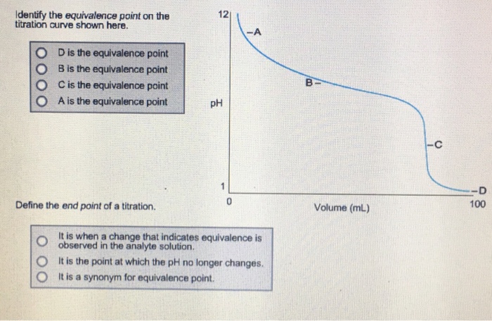 Solved Use The Image To Answer Questions Identify The Equivalence Point On The Titration Curve 0 C Is The Equivalence Point 0 D Is The Equivalen Course Hero